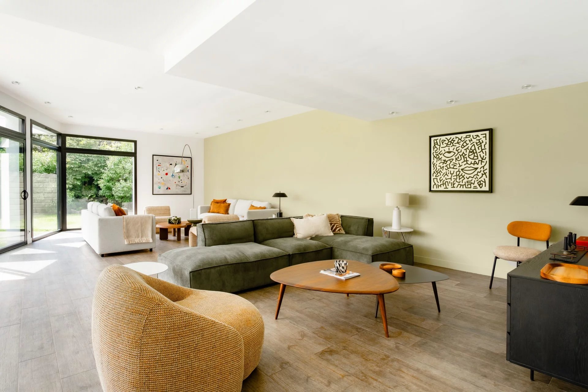 The property benefits from a highly sought-after location, close to Versailles and just 20 minutes from Saint-Cloud. It features impressive volumes, including a magnificent 100 sqm double living room with a fully equipped open-plan kitchen, offering a bright and seamless living environment.