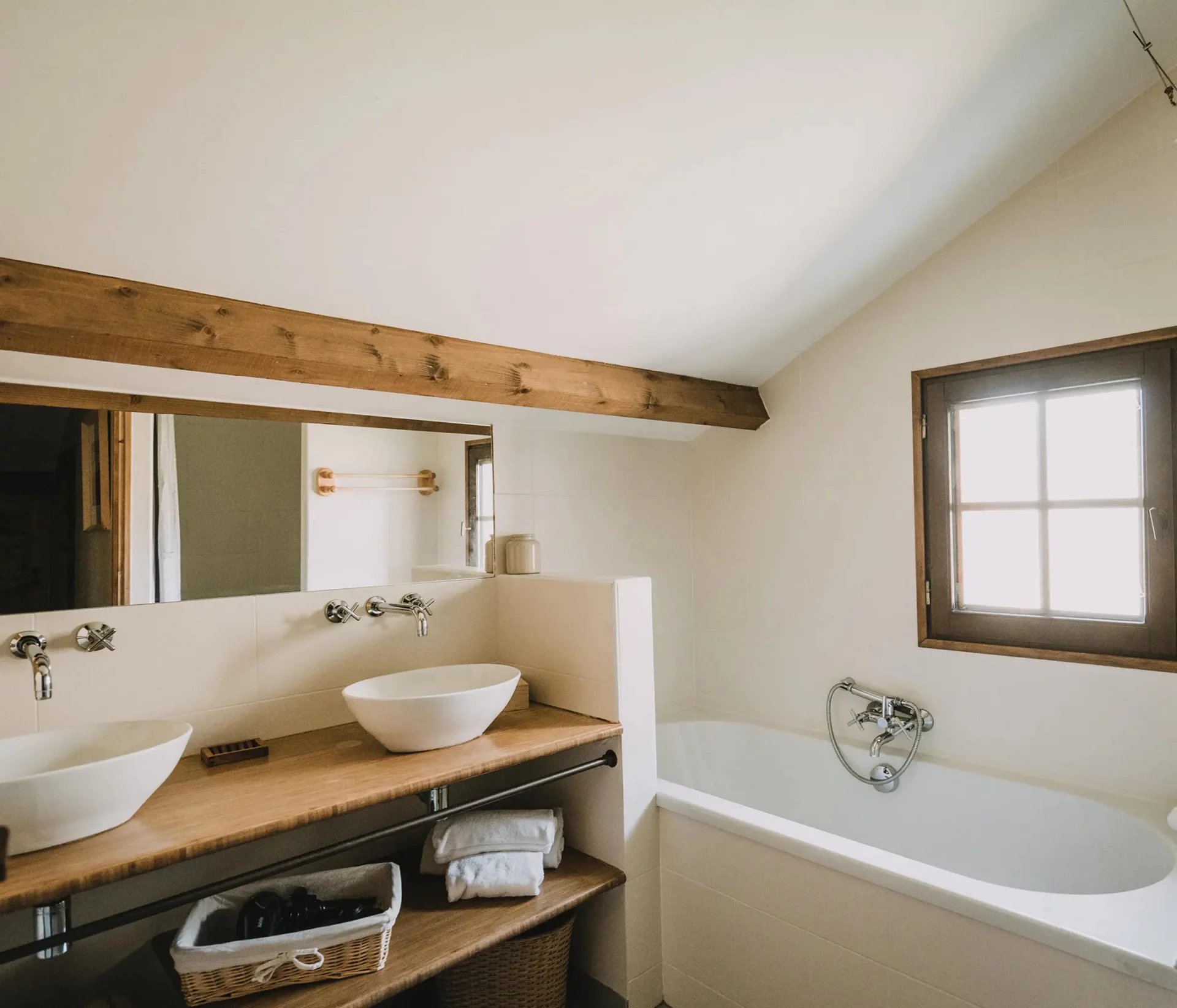 The house features five comfortable bedrooms, each thoughtfully designed to offer privacy and conviviality. Among them is a master suite with a private bathroom, two bedrooms with en-suite bathrooms, a family room perfect for both children and adults, and a flexible bedroom with single or double beds. An additional independent bathroom completes the upstairs with an Italian shower, bathtub, and double sinks. The first floor includes a bright, spacious living area with a fully equipped American kitchen and a TV lounge upstairs for your relaxation.