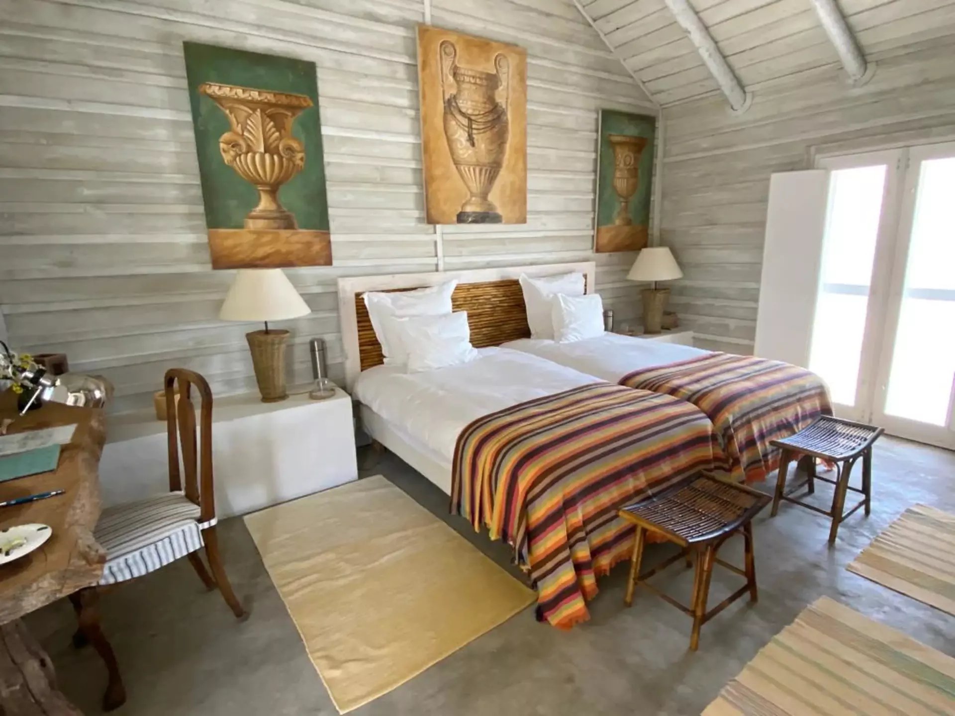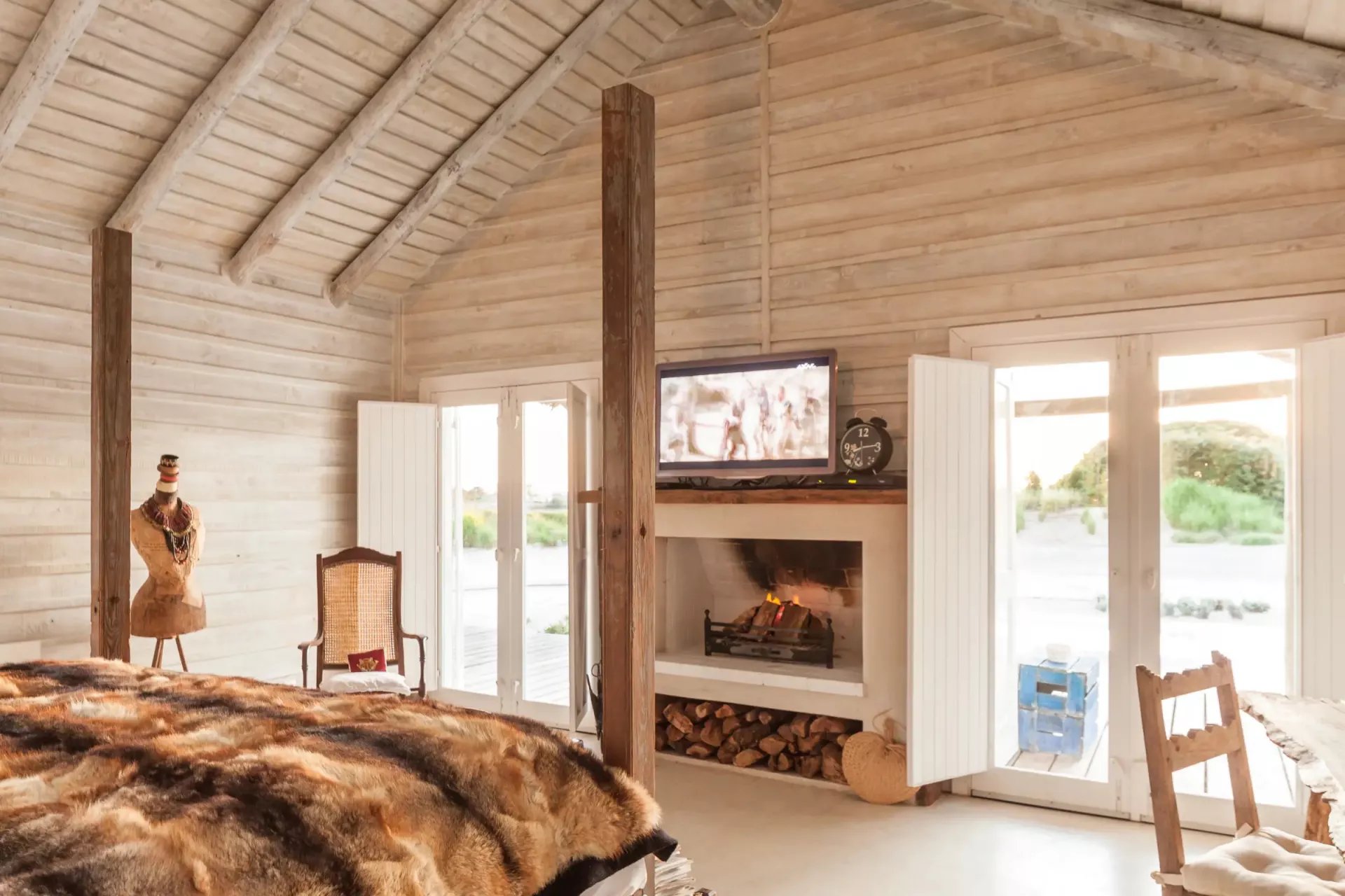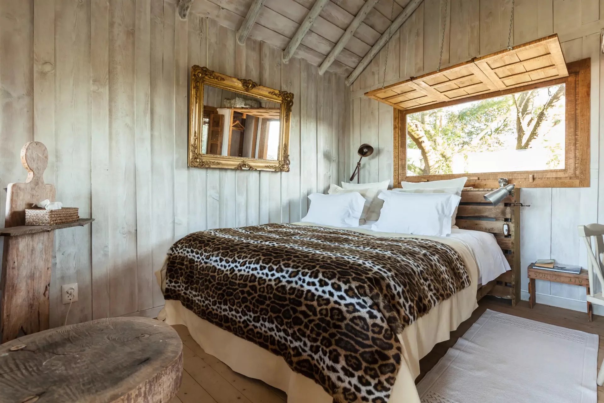 El complejo consta de tres cabañas independientes, con cocina, sala de estar y dormitorios bien equipados. Las luminosas habitaciones ofrecen camas cómodas y vistas impresionantes de la propiedad. La casa del árbol, con su baño y balcón, promete una estancia memorable.