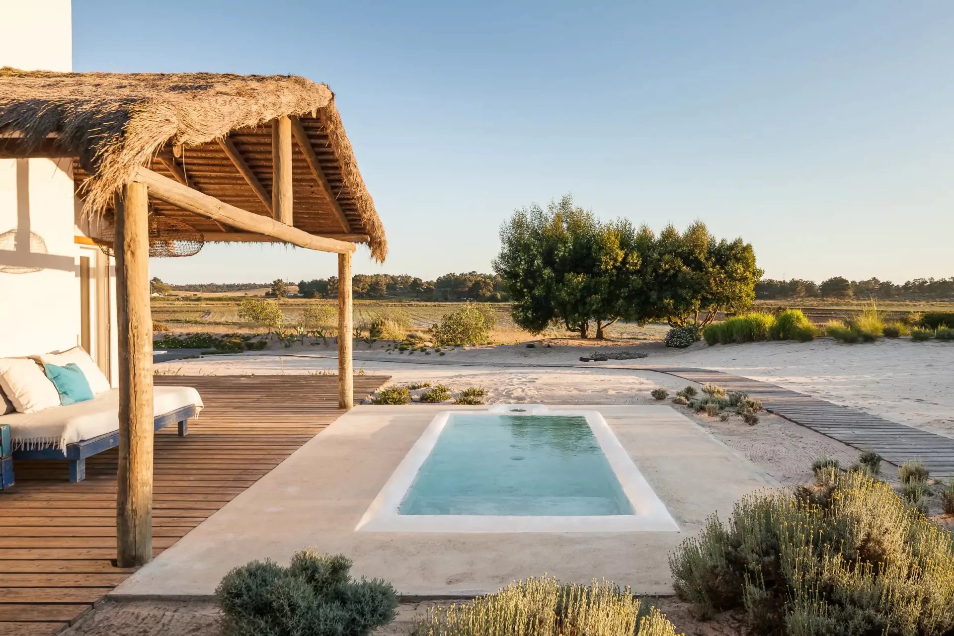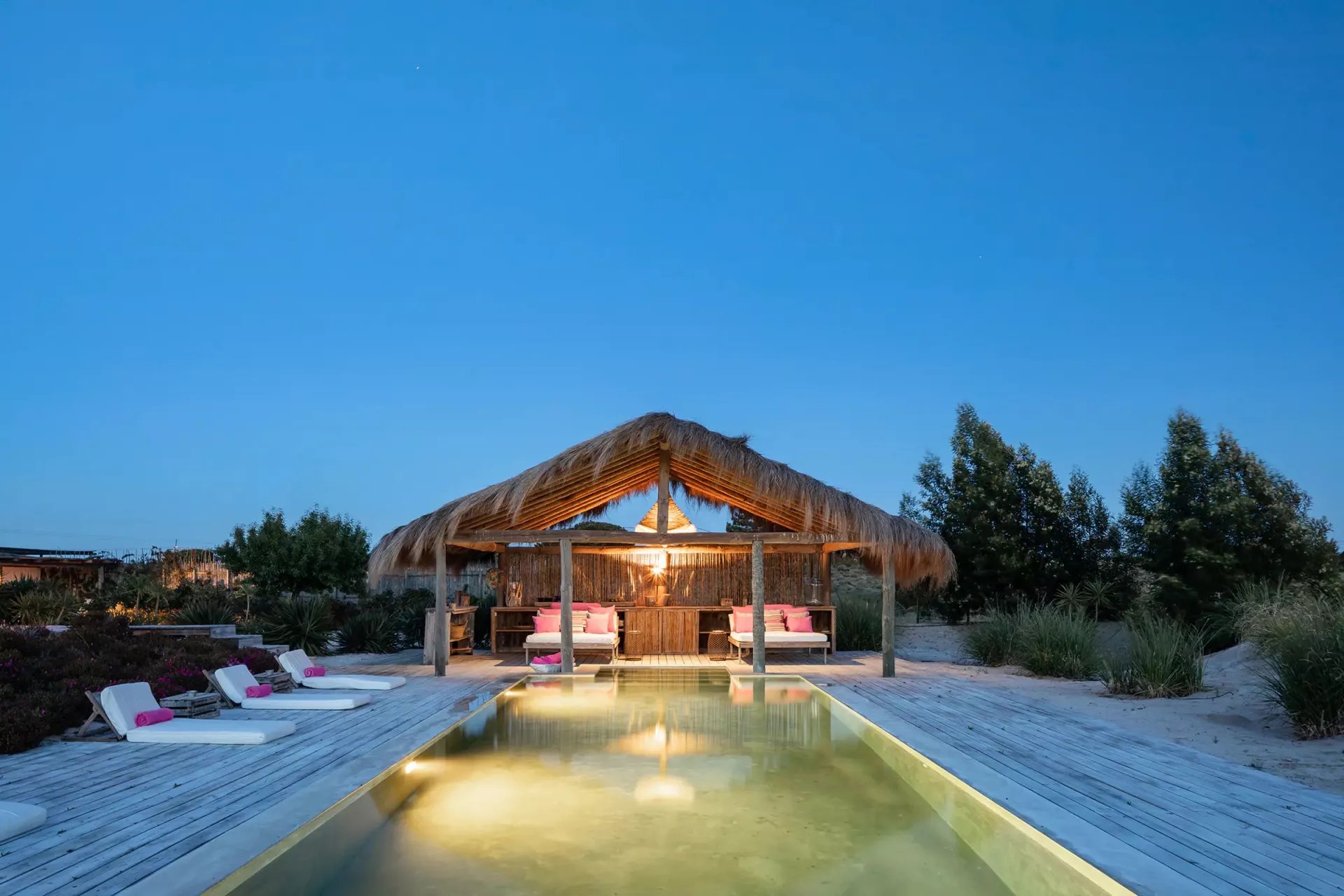 Descubra esta magnífica casa en Comporta, Portugal, disponible para alquiler por temporada para alojar hasta 10 personas. Con 5 dormitorios y piscina exterior de agua fría, esta propiedad es perfecta para unas vacaciones en familia o con amigos.