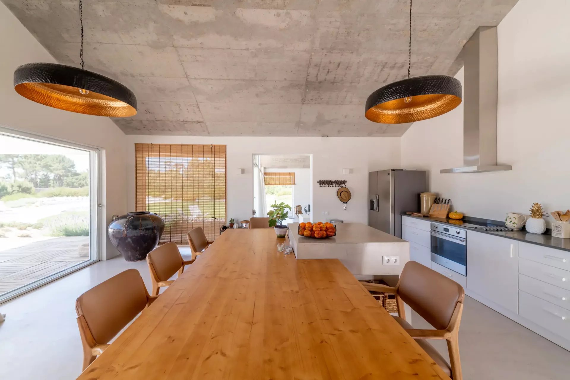 El espacio exterior también está acondicionado con tumbonas y zonas de descanso, perfectas para comidas al aire libre. El entorno tranquilo y los hermosos paisajes de Comporta hacen de este lugar el sitio ideal para relajarse y recargar energías en total serenidad.