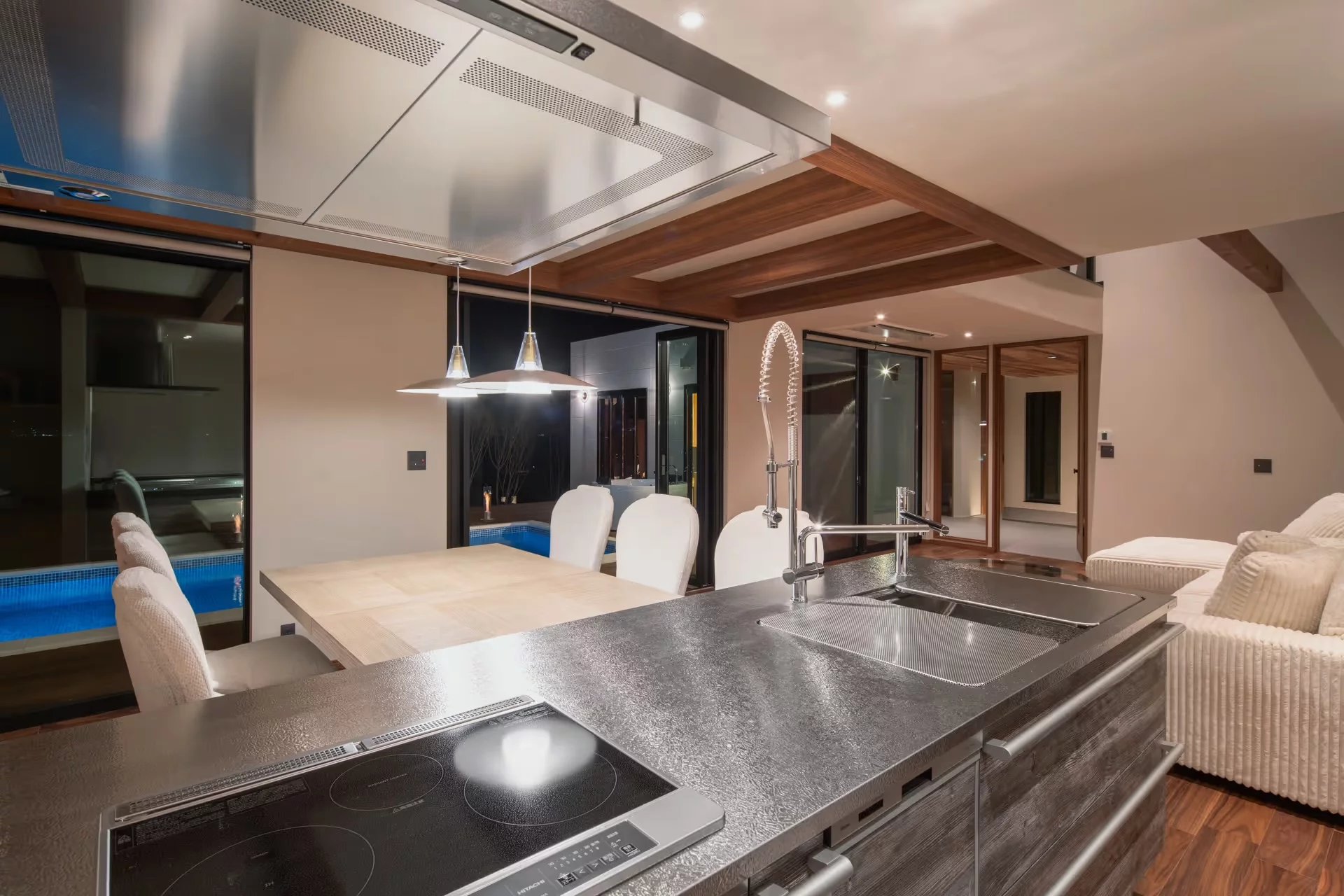 À l’extérieur, la propriété se distingue par une grande piscine, un jacuzzi et un véritable onsen alimenté en eau naturelle, invitant à des moments de détente uniques. Une maison d’hôtes indépendante, rénovée dans le style traditionnel kominka, complète l’ensemble et offre un espace parfait pour accueillir des invités, organiser des séjours familiaux ou créer une source de revenus locatifs.