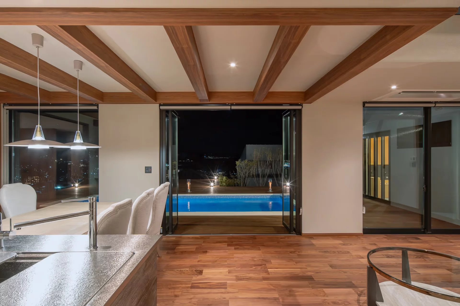 La villa propose plus de 200 m² d’espaces intérieurs lumineux, dotés de finitions contemporaines et d’une circulation harmonieuse entre les pièces. Le séjour ouvert, les chambres spacieuses et les larges baies vitrées créent une atmosphère élégante et chaleureuse tout au long de l’année. La climatisation est installée dans toute la maison pour un confort optimal en toutes saisons.