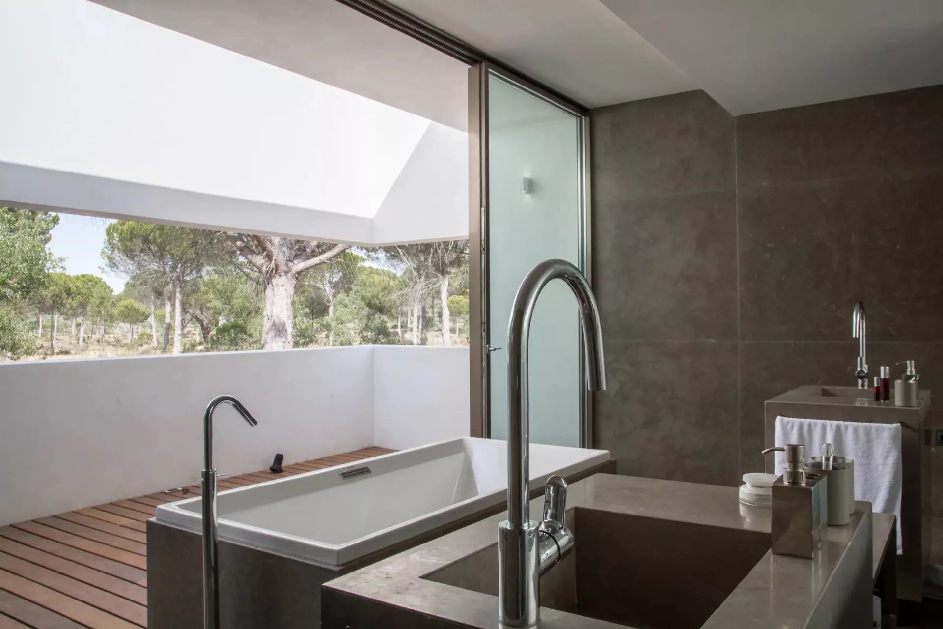 Exposée plein sud sur un terrain de 12 hectares, cette villa surplombe la campagne de Muda, à seulement 5 à 10 minutes en voiture des plages de sable doré de Carvalhal et Pego. Comporta est une destination prisée par les amateurs de mode, d'architecture et d'art moderne, tout en conservant un charme rural authentique. La région est connue pour ses paysages de vignes, de chênes-lièges et de rizières, ainsi que pour ses villages pittoresques aux ruelles pavées.