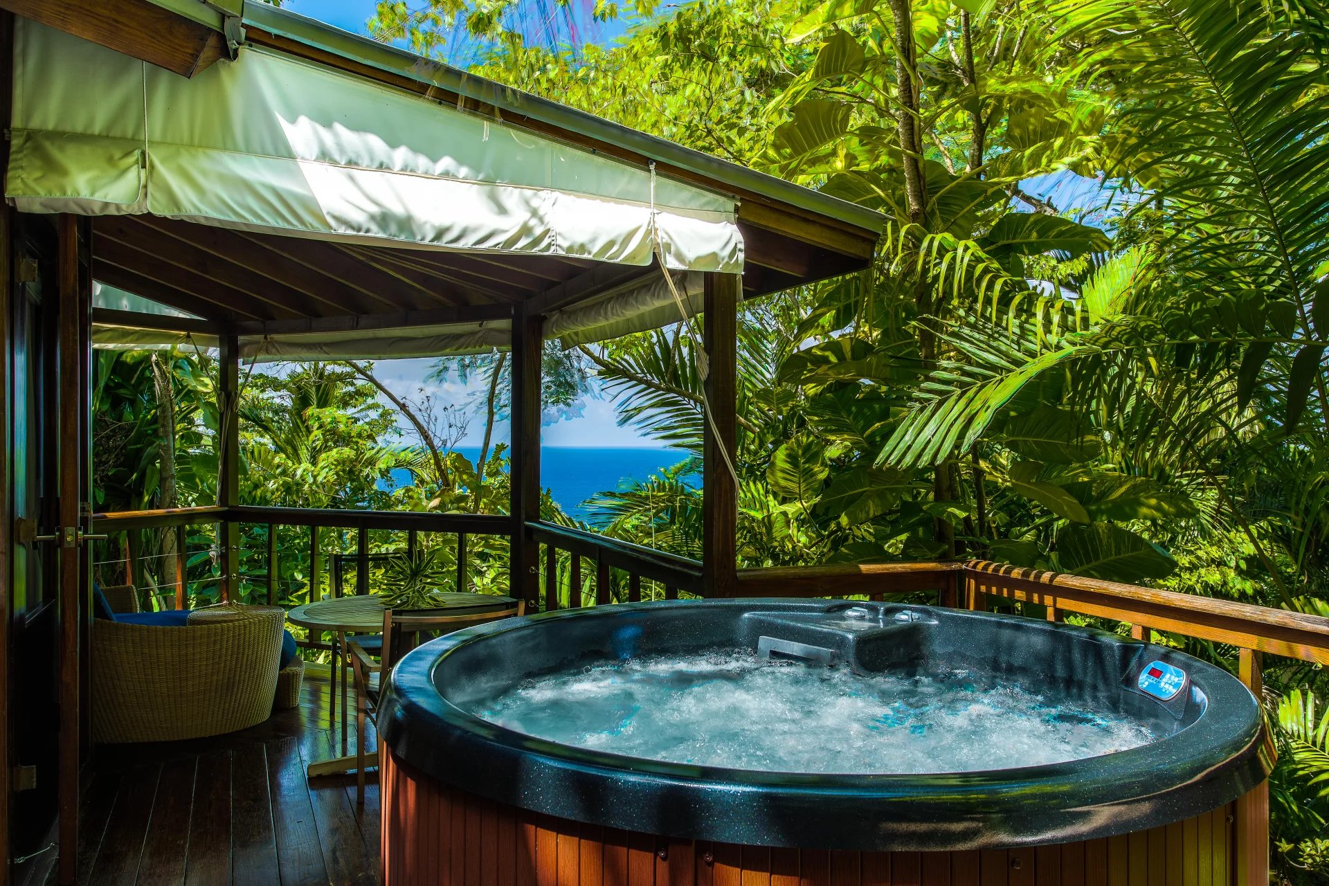 À louer, cette charmante cabane située à Port Antonio, en Jamaïque, est idéale pour des vacances romantiques. Pouvant accueillir 2 personnes, elle comprend une chambre avec un jacuzzi et une douche attenante.