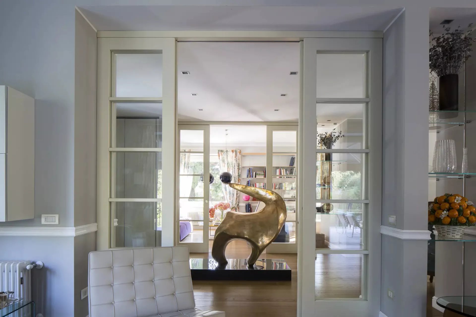 Вилла — настоящий музей дизайна, где представлены исключительные произведения искусства и культовая мебель 1950–2000-х годов, включая работы Кассины, Витры и Морозо, а также скульптуры художника Бижана Бассирита.