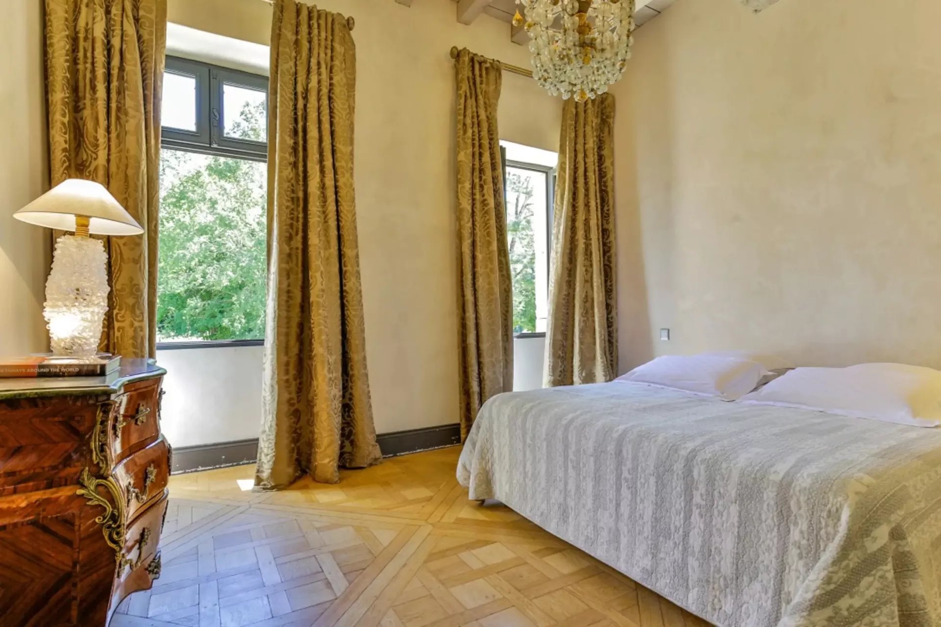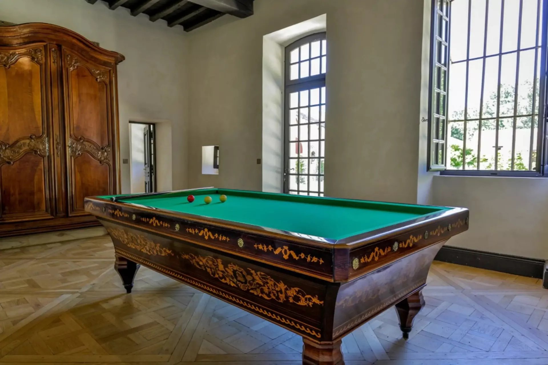 Замок также может похвастаться большим парком, идеально подходящим для прогулок или дружеских встреч на свежем воздухе. Открытый бассейн, окруженный зеленью, идеально подходит для освежения в солнечные дни.
