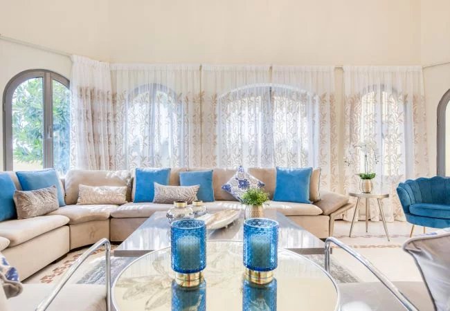 Этот великолепный дом, сдаваемый в аренду в Дубае, идеально подходит для отдыха с семьей или друзьями и может разместить до 10 человек. Эта просторная и комфортная квартира площадью 624 м² с 4 спальнями и 3 ванными комнатами.